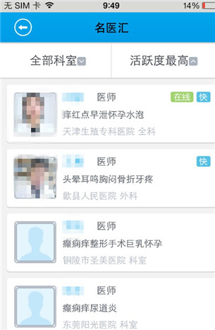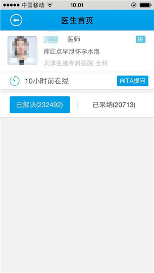 3、提问的是皮肤科或外科的问题。回答的医生来源于各科室,应该是当前在线的医生