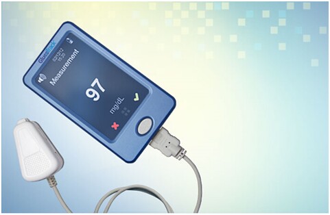 monitoring system),为皮下间质液型血糖仪,测试样品通过一个微型吸盘,从皮肤上吸取。吸盘内装有血糖传感器,并有电缆,与主机连接。