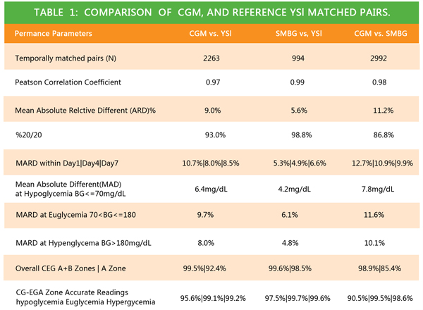 Jefferson大学医院进行,共有15名患者参加试验。试验中,除了ECHO公司的Symphony血糖仪,还使用YSI 2300 STAT血糖仪每隔30分钟采集动脉血样以测试血糖结果,共采集到1500个数据,与ECHO Symphony血糖仪得出的数值相对照。克拉克错误网格分析(CEG)表明,98.9%的数据为临床准确(A),0.3%为良性误差(B),综合A+B为99.2%。平均相对误差绝对值(Mard)为9%。
