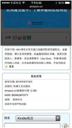 2. 下载Kindle阅读软件,在app store或者android市场搜索:Kindle,下载到手机或者电脑后用你的亚马逊帐号再次注册下。