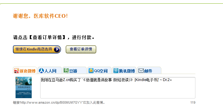 3. 回到亚马逊网站,登陆后,搜索 《估值就是讲故事》,点击进去,右侧点击“立即购买”!