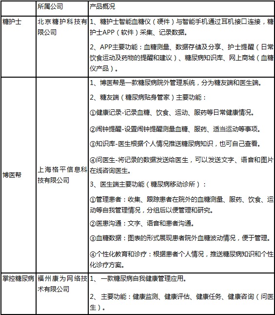 表一:糖护士、博医帮、掌控糖尿病APP产品概况