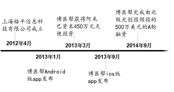 咱们先看模式最复杂的博医帮吧。创始人冯燕飞,下图是企业里程碑: