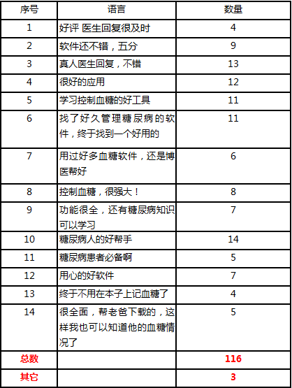 表三:博医帮在安卓市场上的一些评论语言及其重复数量