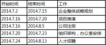 假设我们现在要为企业A的创业计划做一个甘特图,每个初创企业都可能要走一下这个故事。