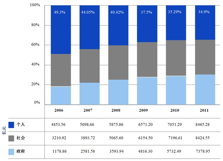 民币,比2011年增加了4568.5亿人民币。尽管有大量的医疗费用,但中国人的慢性病治疗并无明显改善。未来慢性疾病将消耗更多的资源。