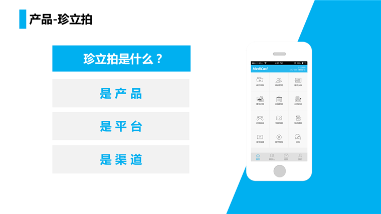友了,其他移动医疗的同行小伙伴们还是需要医生社区的,所以珍立拍就是为了这个而生的!我们要做一个连接型生态,守好规则,不要过界!还有,我们是移动医疗产业界第一传媒!