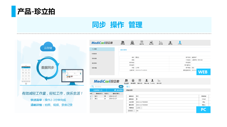 需要等待24小时,并且成本高。珍立拍的病历采集为医生提供了多种方式:拍照,录音,视频和语音识别等。而且有强大的交互技术支持,从一开始就做到了移动