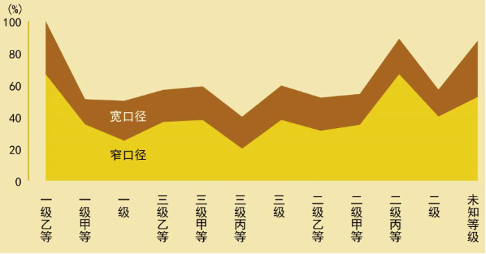 上图可以看出,宽口径下,医生活跃度最高的是二级丙等和一级乙等,均超过了66%,活跃度最低的则是三级丙等医院的医生,活跃的仅有20%,而三级甲等