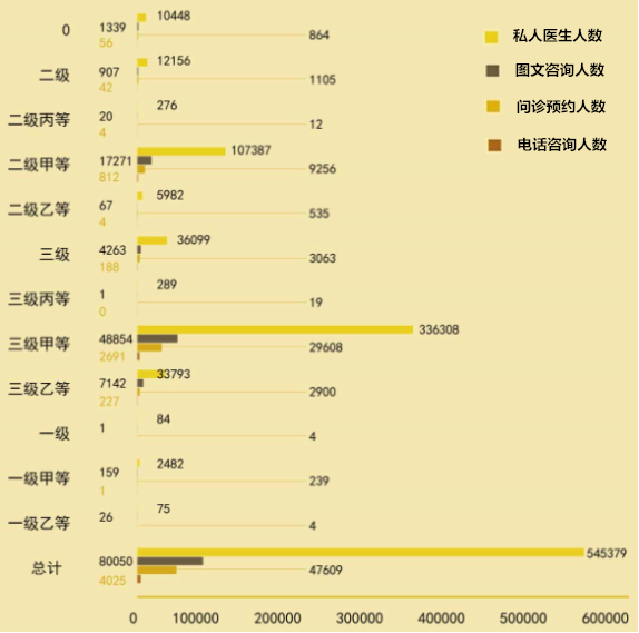 从上图可以看出,用户最愿意购买的是包含图文咨询和电话咨询的私人医生服务,三甲医院医生的私人医生购买数量是后两者的6.5倍。