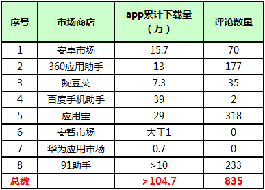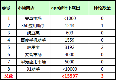 青苹果医生在安卓市场上的下载量过万,但是8个下载平台,一共只有3个评论,在app