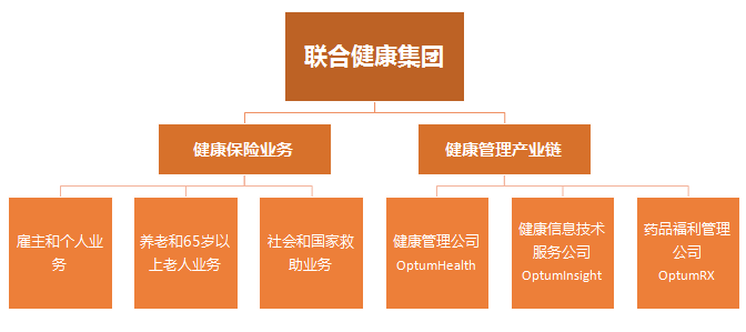 UnitedHealthcare是公司的健康保险业务板块,而Optum作为保险的延伸,主要由健康管理公司(Optum Health)、健康信息技术服务公司(Optum Insight)及药品福利管理公司(OptumRX)三家子公司组成。