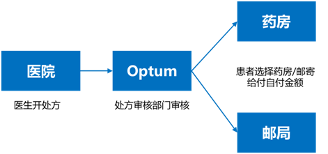 院、药房之间的管理协调机构。OptumRX成立的目的在于满足客户便利化的购药需求,同时帮助患者对医疗费用,特别是药品费用进行有效管理。
