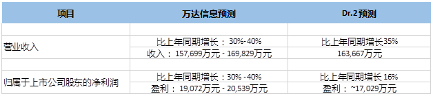据,对万达信息的业绩进行以下的分析和预测,得出万达信息2014年营业收入可以达到其预期,但归属于上市公司股东的净利润则大约有2000万元的差距,