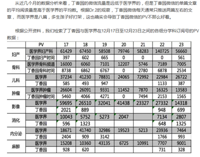 这里的PV只是近似理解而已,实际上现在微信更改规则,每一个人阅读就算一次,都在下面标的清清楚楚,10万+除外。而且我写的非常清楚,因为医学界文章数量多,所以导致流量大。而丁香园文章数量少,相对阅读数量高。但是,从整体来看,医学界仍然是超越了丁香园没有悬念,光头条的阅读量就已经遥遥领先了。