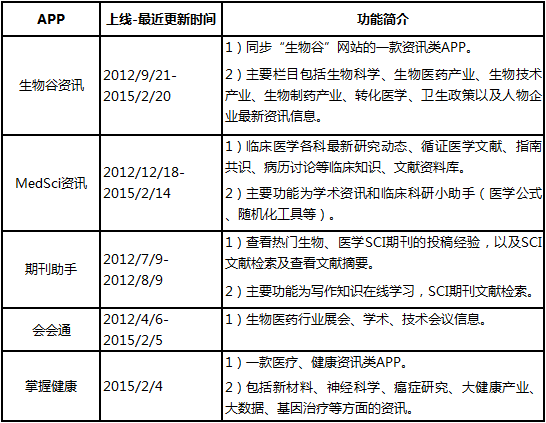 生物谷公司目前有5个移动医疗APP,如下是APP列表: