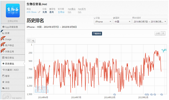 生物谷资讯APP近365天在App Store的排名: