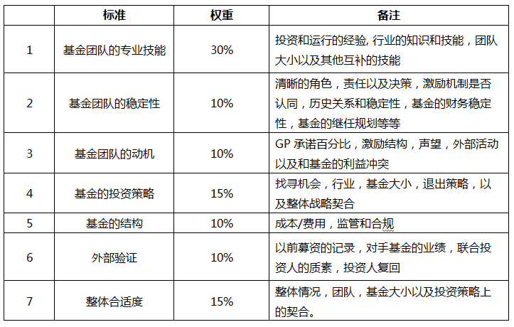 经过一轮的搜寻, LP终于在一大批募资说明书(PPM)里面筛选出一小部分基金进行进一步评估。问题来了, LP是怎样评估和挑选一个基金的呢?评估是基于哪些标准?