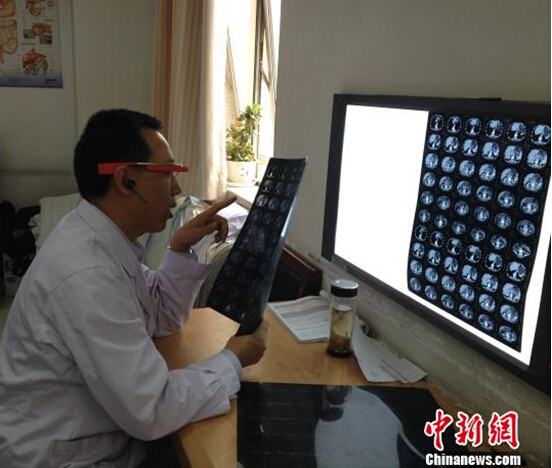 西京医院医生佩戴谷歌眼镜向出差在外的教授进行病例汇报、阅片