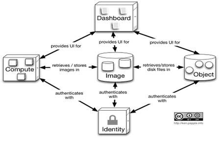 Compute(Nova),它提供一个工具来部署云,包括运行实例、管理网络以及控制用户对云的访问。它对外提供API,用户可以用API来完成创建虚拟机等工作。对内可以使用不同的虚拟化技术,例如Linux KVM、VMware和Xen。
