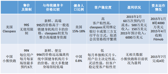 小熊快跑与Classpass的商业模式的比较: