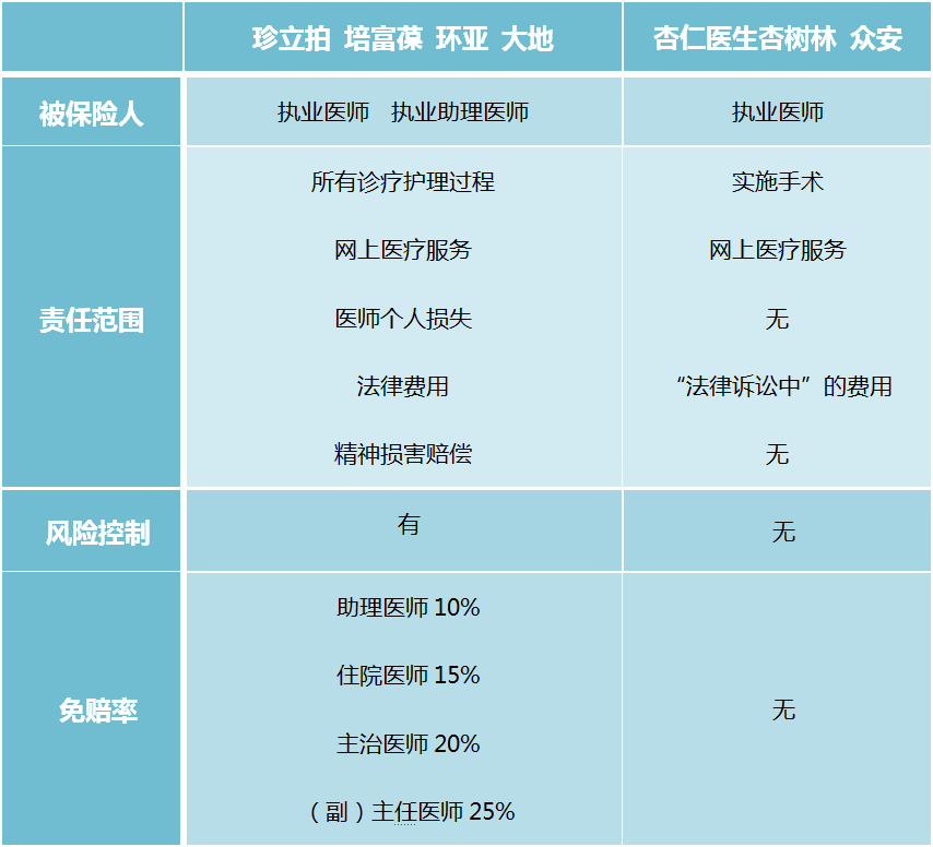 “杏+杏“:其《医师个人职业责任保险条款》第二条,“凡符合保险人承保条件的持有医师执业证的执业医师,可作为本保险合同的投保人及被保险人。”被保险人仅限于执业医师。