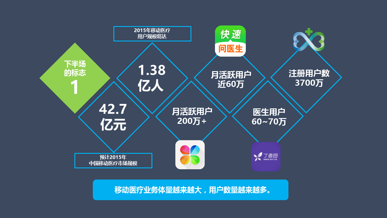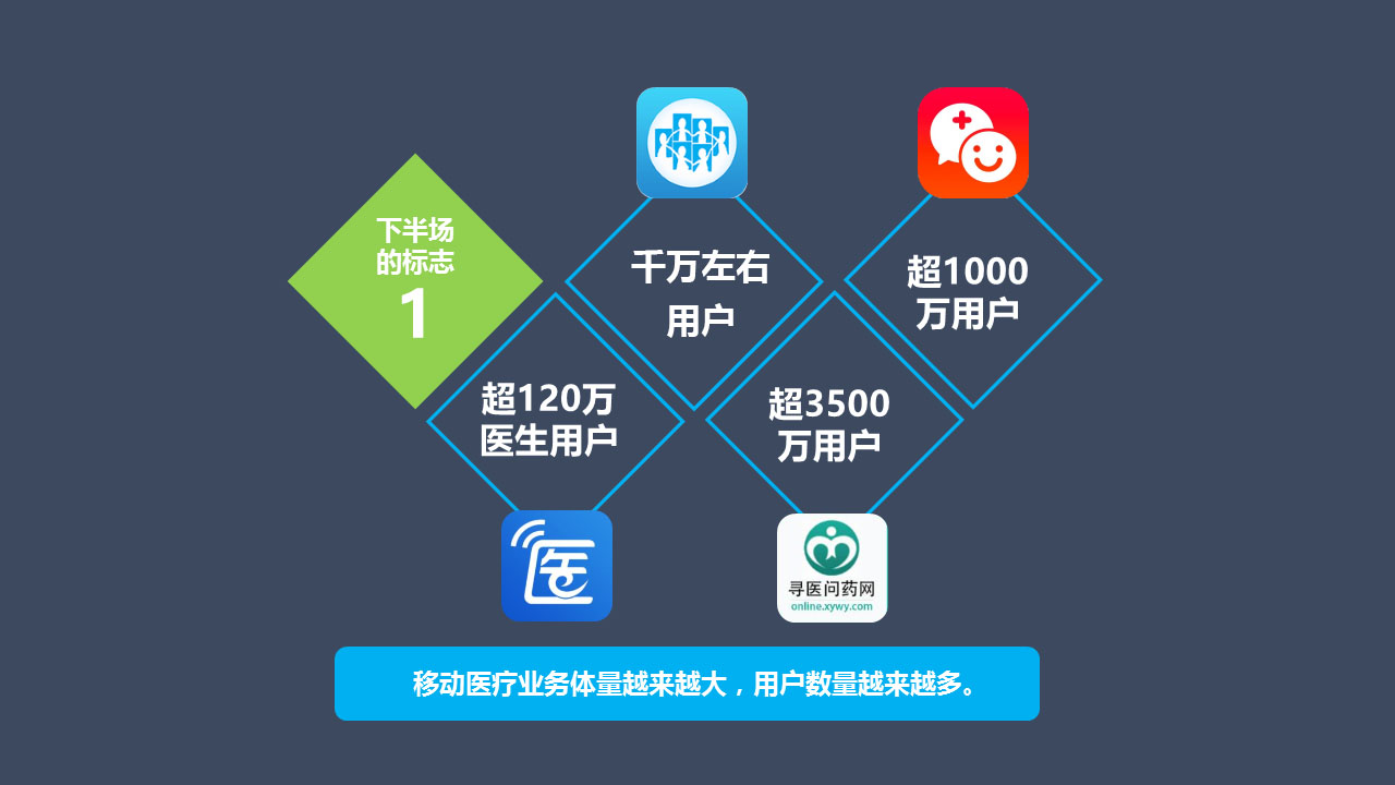 下半场标志1:移动医疗公司的业务体量越来越大,产品用户数也越来越多。