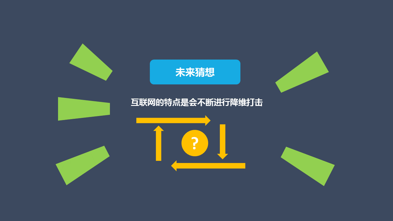 互联网的特点是会不断形成降维打击,它可以从这一点引到另一点,再引去别的方面。