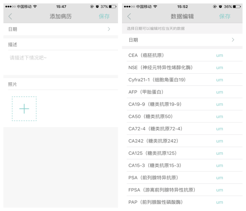 3-4-1病例:可添加自己病例(可拍照上传),病情跟踪:可编辑添加自己的病情