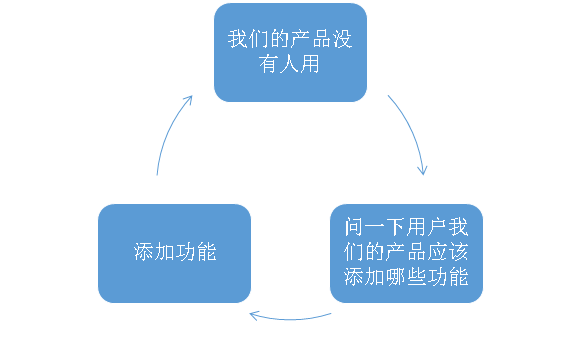 那么,我们怎样打破这个产品死亡周期呢?我们来看看这个产品死亡周期本身,你会发现,从逻辑上没什么问题啊,这是因为,满足用户需求是一个多么良好的意愿啊,大牌的管理丛书上不是一直都在不断强调倾听顾客需求的重要性吗?所以,当用户给我们建议的时候,我们的惯性是竖着耳朵来倾听,做用户需要我们做的事是无比正确和冠冕堂皇的一件事。但是良好的意愿大多时候会将你的产品拖进死亡深渊。