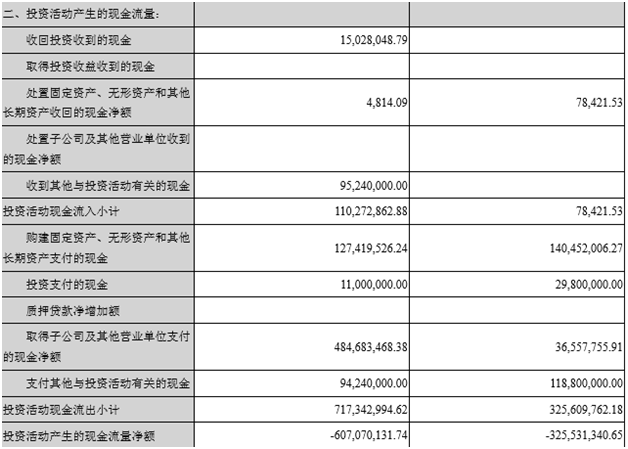 我们可以看到在现金流量表的最后一行,显示的是现金及现金等价物的增加额为-124437742.65元。这是什么意思呢?这表示当经营活动,投资活动以及筹资活动的现金流量净额相加起来,万达信息在2014年的现金余额减少了1.24亿元,这就是该公司的净现金流。