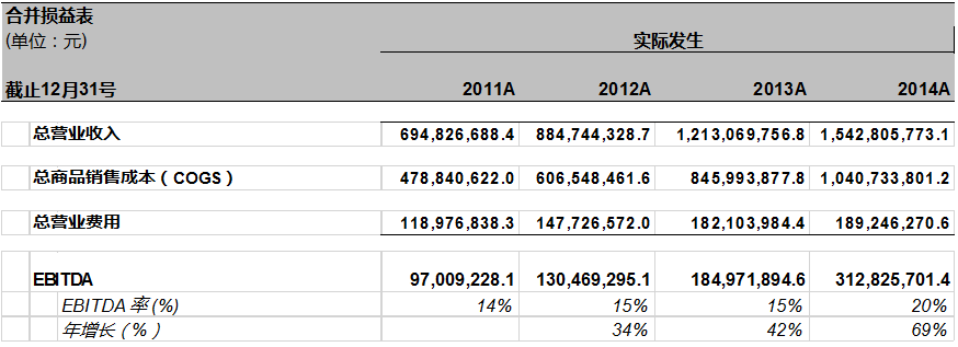 有较大提升。这主要是和EBITDA在2014年有较大的同比增长有关。