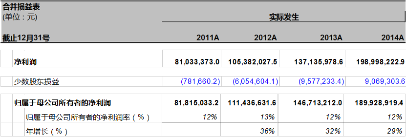 –所得税支出。这个计算得出的结果应该和万达信息年报利润表里的净利润数额一致。如下图所示: