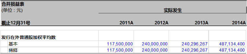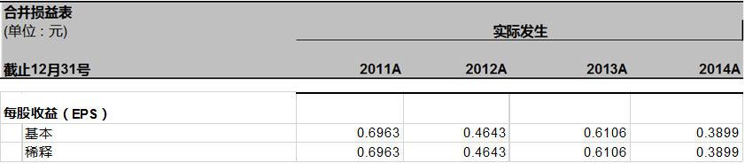 EPS=归属母公司所有者的净利润/总基本股本数量,我们很轻易地计算出万达信息过去4年的EPS,