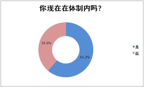 从调研数据可以看到,目前约有61.2%的医务工作者在体制中,剩下38.8%的医务工作者不在体制中,可见在体制内的医务工作者占比还是较多的。