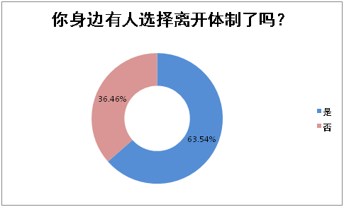 63.54%的医务工作者身边会有医疗同行选择离开体制,可以看出医务工作者离开体制是一个比较普遍现象。