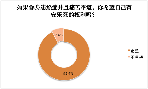 有超过九成的人(92.4%)希望自己在身患绝症并且痛苦不堪的时候有安乐死的权利。