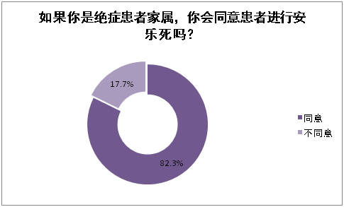 作为绝症患者家属,82.3%的医务工作者会同意患者进行安乐死,17.7%的医务工作者不同意自己的亲人进行安乐死。