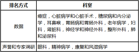 US News全国最佳医院专科排名每年更新一次,一共16个专科被收录,其中12个专科的排名主要由数据确定,另外4个专业排名则完全基于声誉与医生专家的调研。