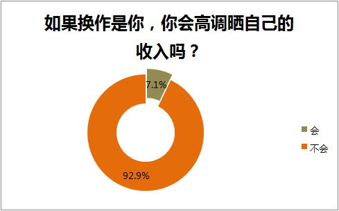 虽然有一半的医务工作者觉得晒收入坦荡荡,但是会高调晒收入的人只有7.1%,超九成的人不会晒出自己的收入,比较低调。
