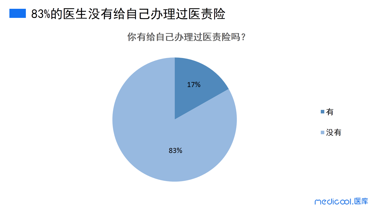 我们可以发现,83%的医生没有给自己办理过医责险,给自己办理过医责险的医生仅占17%。