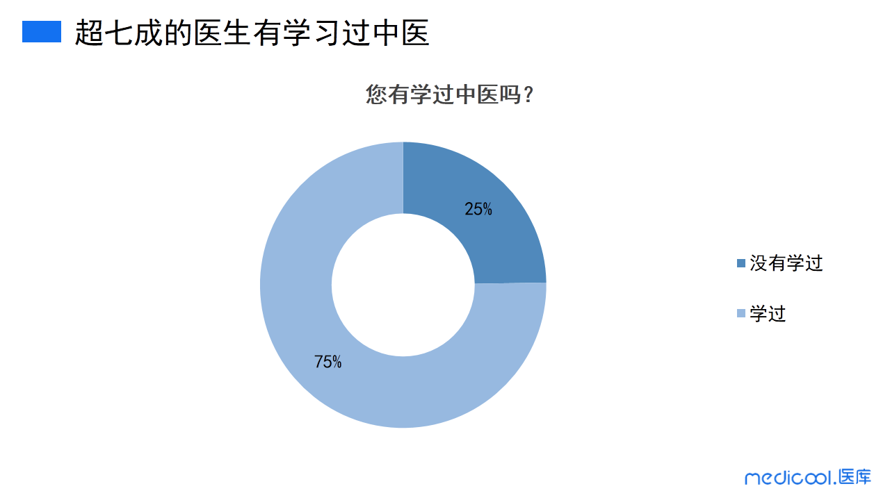 调研数据显示,75%的医生有学习过中医,没有学过中医的医生占25%。