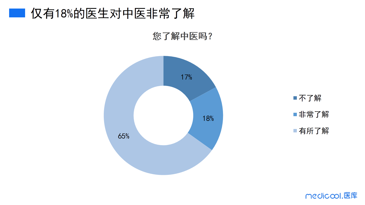 虽有超七成的医生学习过中医,但非常了解中医的仅占18%,而绝大数的医生对中医只是有所了解,还有17%的医生表示并不了解中医。