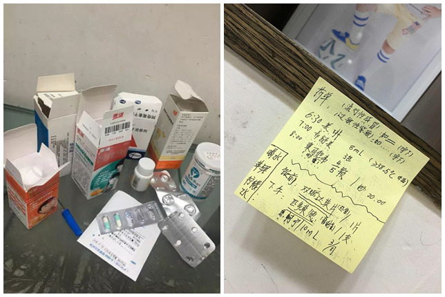 因为需要吃的药太多,懂事的一一怕自己忘掉,他就自己在便签纸上写了自己的服药提醒,于是就有了上面那张照片。