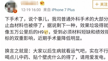 但是透过这个现象看本质,其实在年底出现的这个情况,有没有之前各科室各医生为了创收和不可描述的利益驱动而产生的过度诊疗与用药呢?年关难过的时候,粗暴一刀切,展示如何影响临床工作,走向了另一个极端!