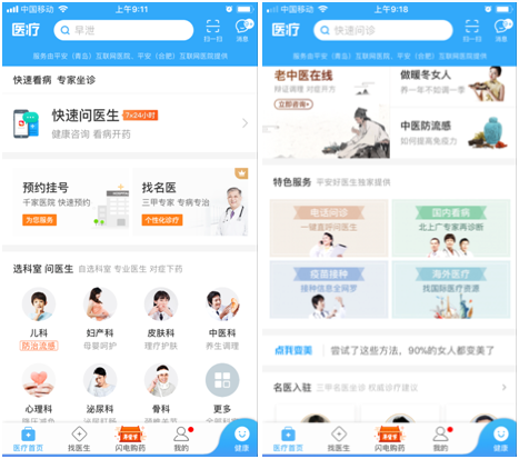 这里我们看下这些业务如何在其主力业务载体,平安好医生APP上展示: