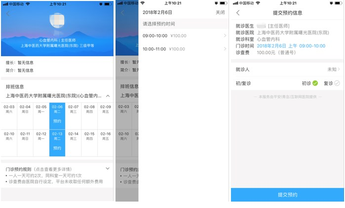 选择医生挂号:包括该医生的简介以及排班信息等,这里的挂号应该与挂号网,趣医,健康160等第三方挂号平台进行了合作。