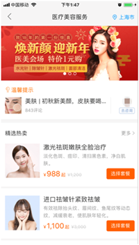 7)点我变美:可以在线购买美容套餐,这种套餐不是针对一家美容机构的,选择套餐后,里面可以选择支持机构。