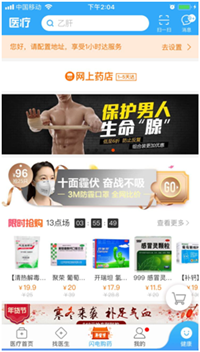 1. APP内容丰富,使用流畅,各个板块的交互性好,以医疗和健康两个大的板块为中心,其实又各有交叉,医疗首页和健康首页分别汇聚了各个小模块的全部入口,还特别将问医生和闪电购药模块设置独立入口,突出其重点功能模块。