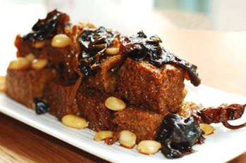 四喜烤麸是上海人年夜饭中的经典冷菜之一,由烤麸加上香菇、金针菜、黑木耳、花生米等辅料做成。这道菜的味道比较甜,符合多数上海人的口味哦!